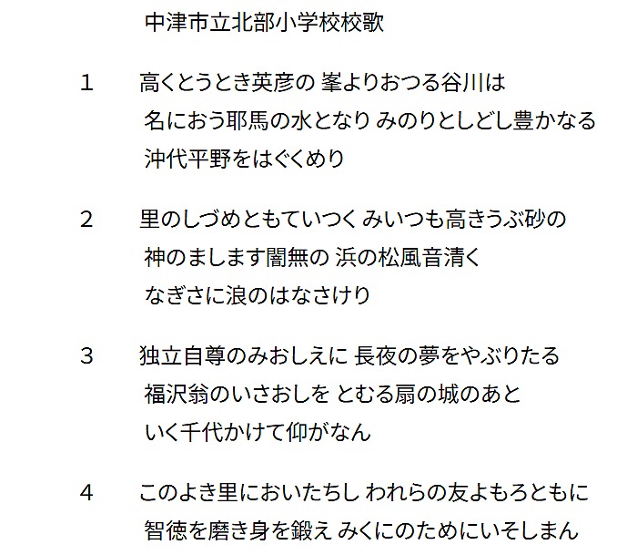 入学式と卒業式の年2回しか歌わない校歌ですが、忘れずに覚えているのは不思議です。なぜか、3番までしか歌いません。