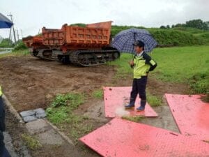 浸水が想定される前に、排水ポンプを設置し、河川等に配水するものです。