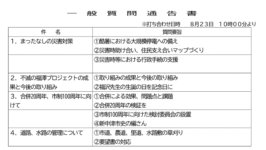 ※一般質問通告書は、左の画像をクリックするとご覧いただけます。