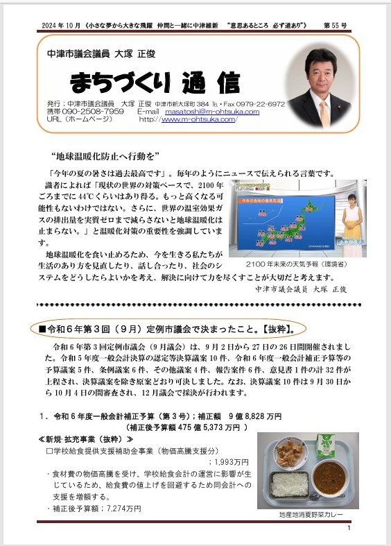 さて、9月議会が終わって作成してきた「まちづくり通信第55号」を最終校正して、ようやく完成しました。