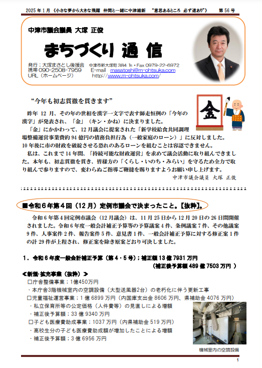 さて、12月議会の概要をまとめた「まちづくり通信第56号」が出来上がりました。