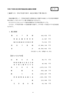 主な事業として、学校給食提供支援補助金の増額や梅雨前線豪雨による災害復旧費、65歳以上の住民税非課税世帯を対象にした省エネエアコン購入費補助金、中学校体育館へ空調設備工事費、小中学校の防犯カメラ設置委託料の追加などが計上されています。