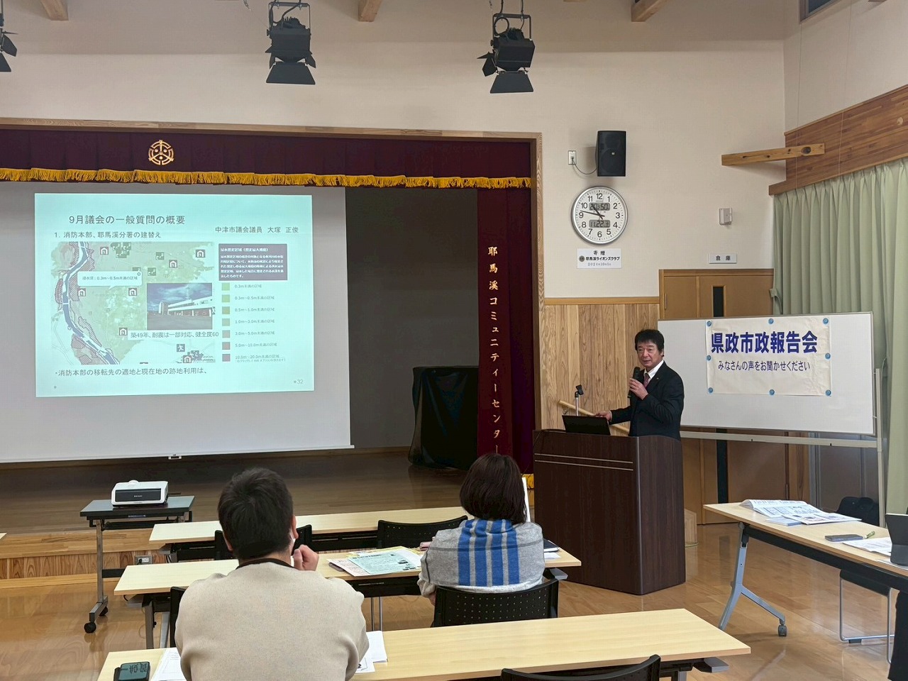 さて、吉村県議と私たち会派で、県政市政報告会を耶馬渓コミュニティセンターと山国社会福祉センターで開催しました。