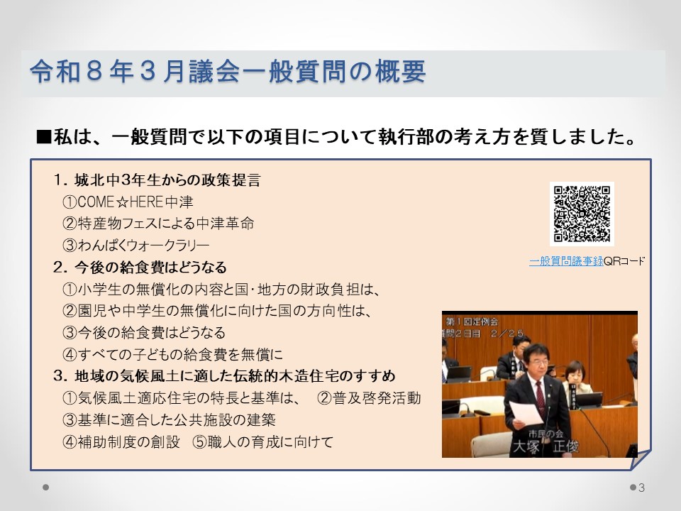 おはようございます。中津市議会議員の大塚正俊です。