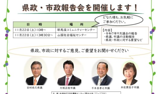 県政の抱える課題解決や中津市政と県政をつなぐパイプ役として、彼の当選を祈願しています。