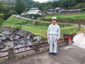 耶馬渓町の柾木川では擁壁が崩落していました。