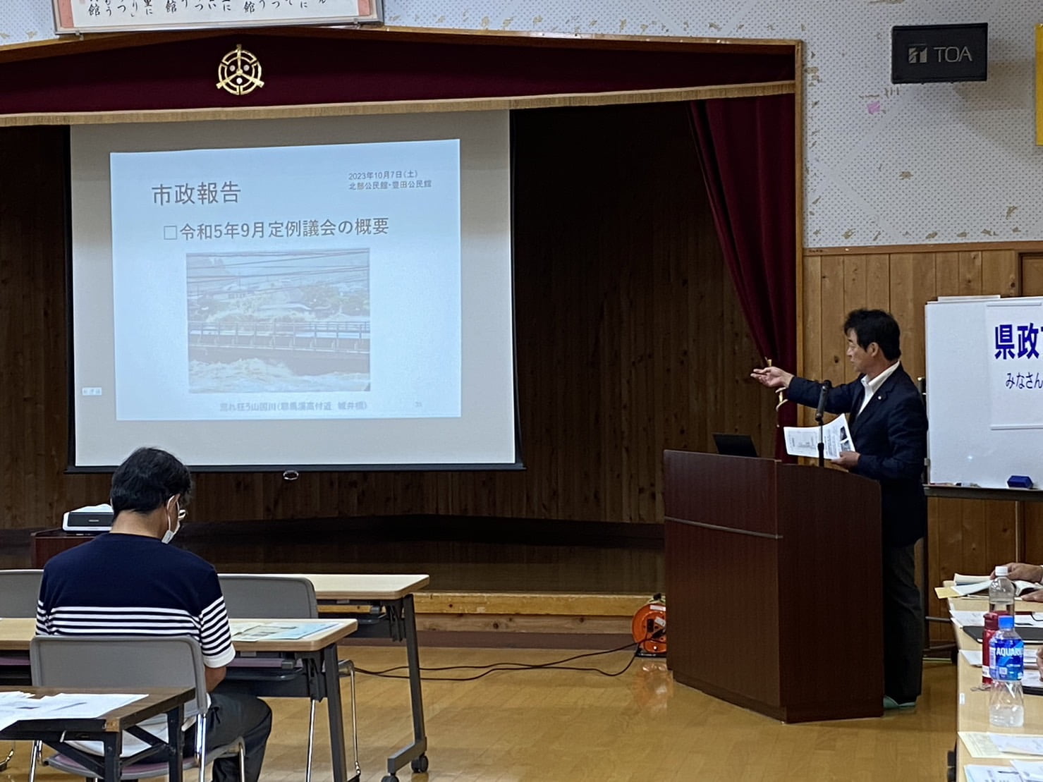 午前の北部公民館では、約30名の皆さんに参加していただき、9月議会の一般質問の概要を報告しました。