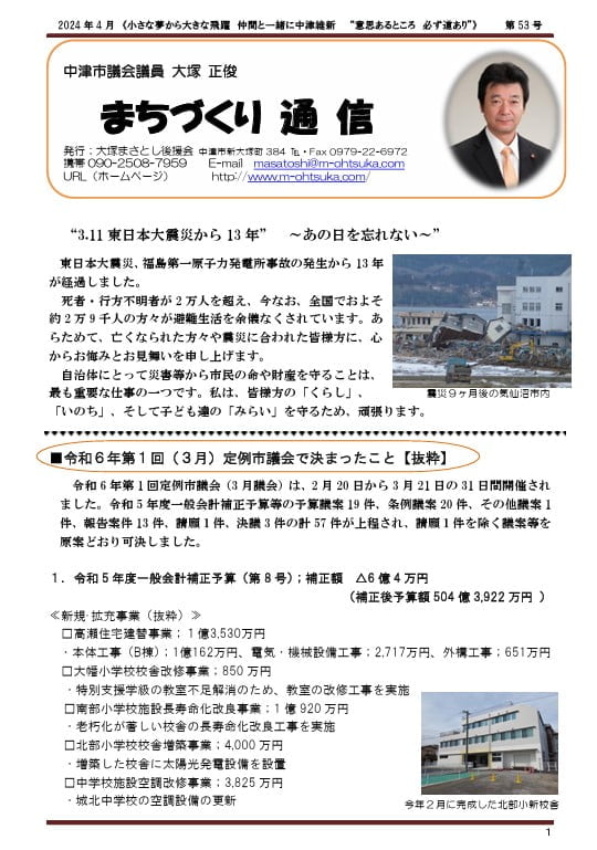 昨日、議会が終わってから作成してきた「まちづくり通信第53号」を最終校正して、ようやく完成しました。
