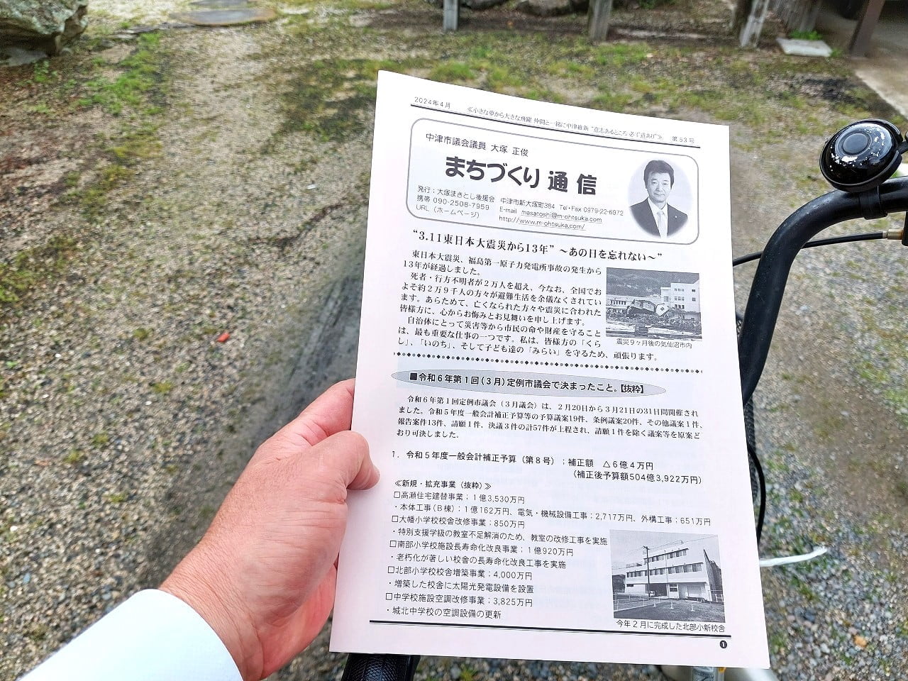 その後、3月議会の概要をまとめた「まちづくり通信53号」を新大塚町内のお宅に配付しました。