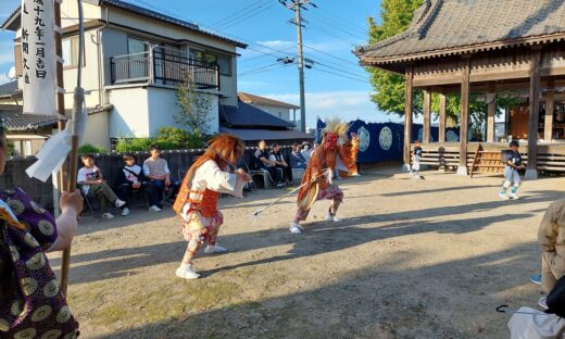 昨日、地元新大塚町の八社神社の秋祭りで、2年ぶりに豊前蠣瀬神楽を奉納しました。