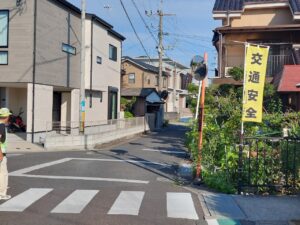 昨日、北部幼稚園北側のT字路交差点で交通指導に立ちました。