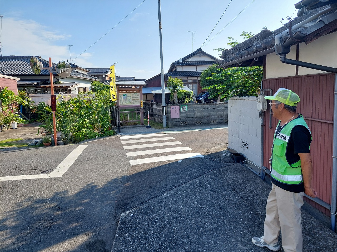 見通しの悪い交差点で、毎朝地域のボランティアさんが交通指導をして頂いています。