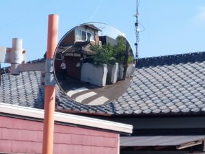 交差点に立っているカーブミラーが小さくて、歩道の子ども達が見えません。