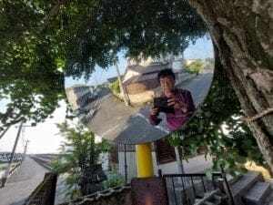 ついでに、カーブミラーを拭いて、約3時間の作業は終了です。