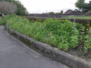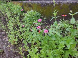 毎年、百日草が自然生えするので、草刈機で刈るわけにはいきません。