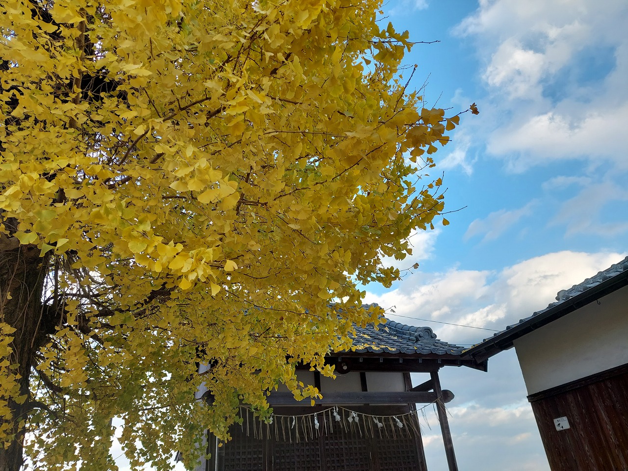 ここのイチョウは、市内のイチョウより遅く黄葉しますが、例年より1週間ほど遅くなりました。