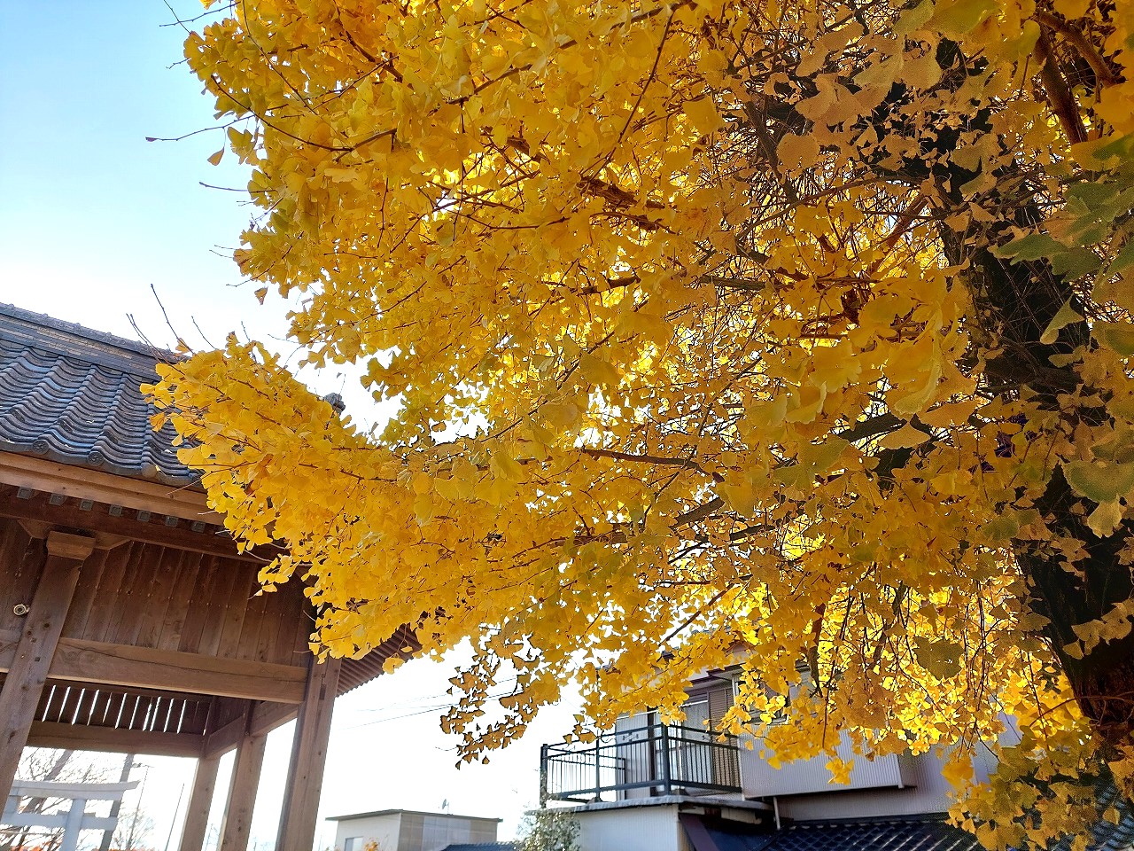 さて、家の前の八社神社のイチョウが黄金色に黄葉しました。