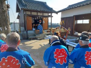 神事の後、午前9時から12時までの約3時間、小学1年生と3歳の孫も一緒に回りました。