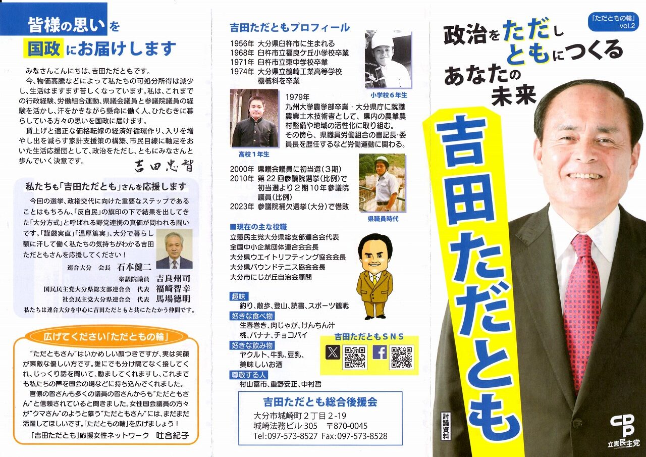 7月に予定されている参議院選挙(大分選挙区)に向けて、「吉田ただとも」さんを応援していきます。