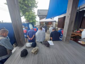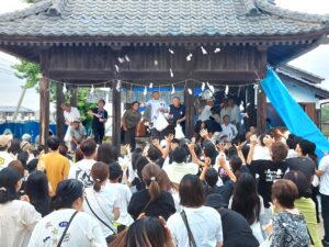 近所の話題地元八社神社の秋祭りで豊前蛎瀬神楽を奉納2025.10.19 おはようございます。中津市議会議員の大塚正俊です。昨日、地元新大塚町の八社神社の秋祭りで、豊前蠣瀬神楽を奉納しました。豊前蠣瀬神楽は、平成28年に国の重要無形民俗文化財に指定されています。今年は120名程度の参加となりました。小さな子どもを連れた保護者が多く、鬼に抱っこされ、泣き叫ぶ子どもの姿は今も昔も変わりません。餅・お菓子まきには、沢山の方が参加してくれました。朝6時すぎの準備から午後9時の片づけまで、長い一日となりました。 Post Share RSS 近所の話題にっぽん酒をつくる会で「稲こぎ」北部公民館まつりに参加しました。
