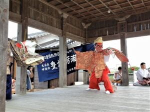 例年、このあと国の重要無形民俗文化財に指定されている「豊前蛎瀬神楽」が奉納されますが、今年はコロナ感染防止のため中止としました。(写真は昨年の様子)