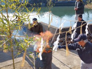 地元の青壮年会「平成会」として、お札やしめ飾りがそまつに扱われないようにと、お焚き上げ行事を実施しています。