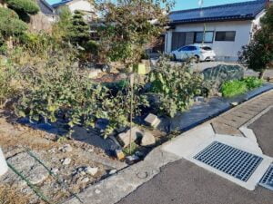久しぶりに時間がとれたので、気になっていた蛎瀬川土手の花と畑のナスを片付けました。
