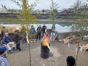 近所の話題 地元の八社神社で「お札、しめ飾りのお焚き上げ」 2024.02.05 おはようございます。中津市議会議員の大塚正俊です。 昨日、地元の八社神社で「お札、しめ飾りのお焚き上げ」を行いました。 5年ほど前まで、地元の青壮年会「平成会」で「どんど焼き」をしていましたが、住宅が建て込んできて出来なくなりました。 前日に竹きりに行き、朝9時30分からお焚き上げを始めました。 地元の方が、お札やしめ飾りを持ってきて、世間話をして帰っていきます。 「平成会」のメンバーにとっては、「大人の火遊び」です。 Post Share RSS 近所の話題 不滅の福澤プロジェクト「地方自治講演会」を開催しまし... 庭の畑のキャベツを収穫しました。