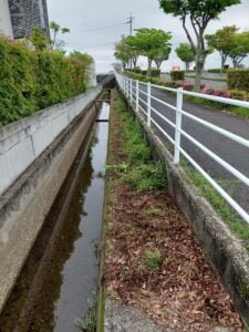 隣接する田んぼがあれば、農業用水を使用する農家の方が維持管理するものですが、田んぼがなくなると草刈りをする人がいなくなります。宅地化により管理する人のいない水路敷や里道が増えてきています。