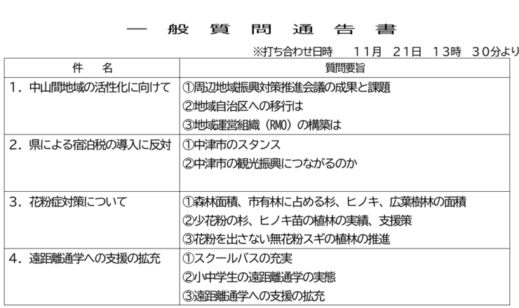 おはようございます。中津市議会議員の大塚正俊です。 昨日の夕方の雨で、久し振りにエアコンなしで涼しい朝を迎えました。 さて、9月議会の議案質疑が行わ...