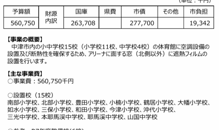 おはようございます。中津市議会議員の大塚正俊です。 3月議会に上程されている令和8年度一般会計当初予算に「小・中学校体育館空調整備事業」に関する予算...