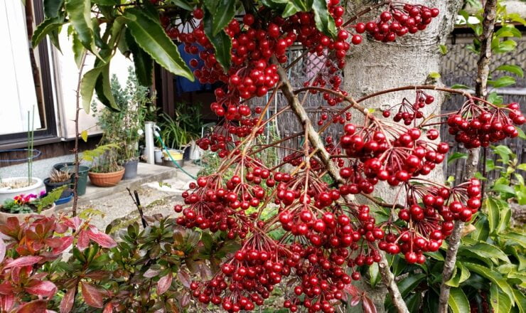 マンリョウ(万両)の木にたくさんの実が付きました。