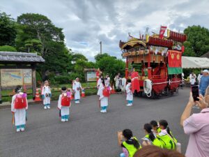 「なかはく」に展示される豊後町のお祇園さんの山車も福沢旧居に立ち寄ってくれました。