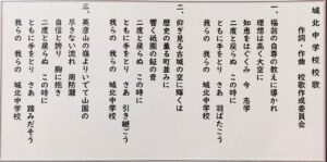 校舎は城南中学校を使用していますが、校名が「城南」から「城北」に変更となり、校歌も新しくなりました。