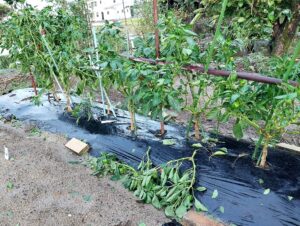 わが家の被害は、後援会の看板が1枚倒れたのと畑のピーマンとパプリカの枝が折れた程度でした。