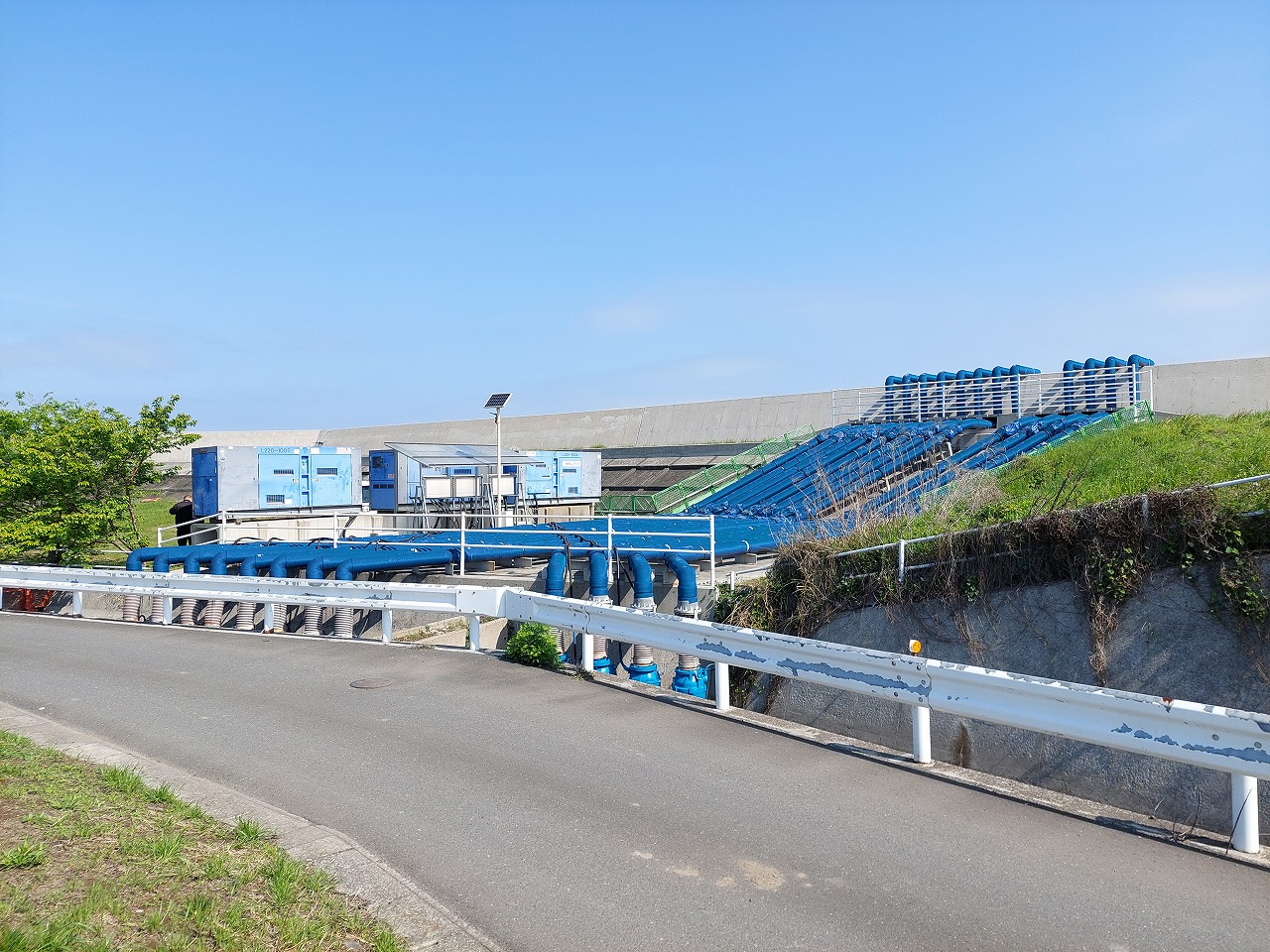 配水管は常設ですが、毎年4月下旬から10月までの間、自家発電機3台と水中ポンプ12台が取り付けられます。