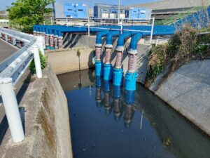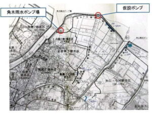 地元の角木・新大塚仮設ポンプは総排水量1.6㎥/秒が設置されています。