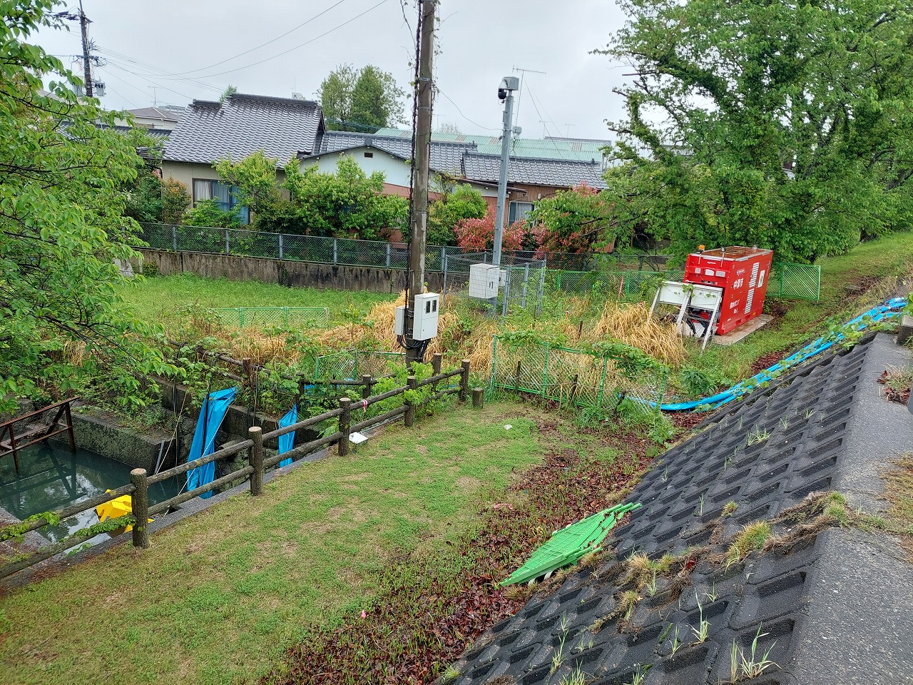 午後2時ごろ、雨脚が強くなってきたので、浸水被害が気になって仮設ポンプの設置状況の確認に行ってきました。