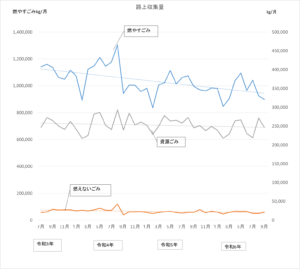 ごみ減量の効果分析が難しいため、新たにグラフを作成しました。