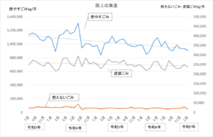 さて、中津市の「ごみ収集(路上収集)」の1月分がホームページに公表されたので、市のデータをグラフにしてみました。