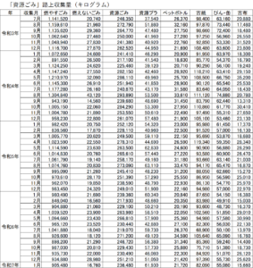 中津市の「資源ごみ等」の収集状況(1月分)