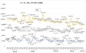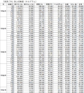 さて、中津市の「ごみ収集(路上収集)」の3月分がホームページに公表されたので、市のデータをグラフにしてみました。