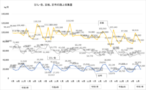 さて、中津市の「ごみ収集(路上収集)」の6月分がホームページに公表されたので、市のデータをグラフにしてみました。