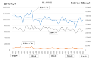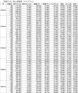 さて、中津市の「ごみ収集(路上収集)」の7月分がホームページに公表されたので、市のデータをグラフにしてみました。