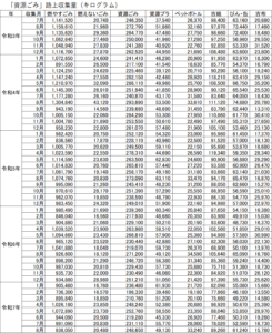 燃やすごみは、令和2年より減量し一時的に増減がありましたが、継続して減量傾向となっています。