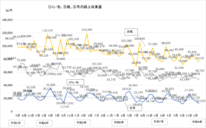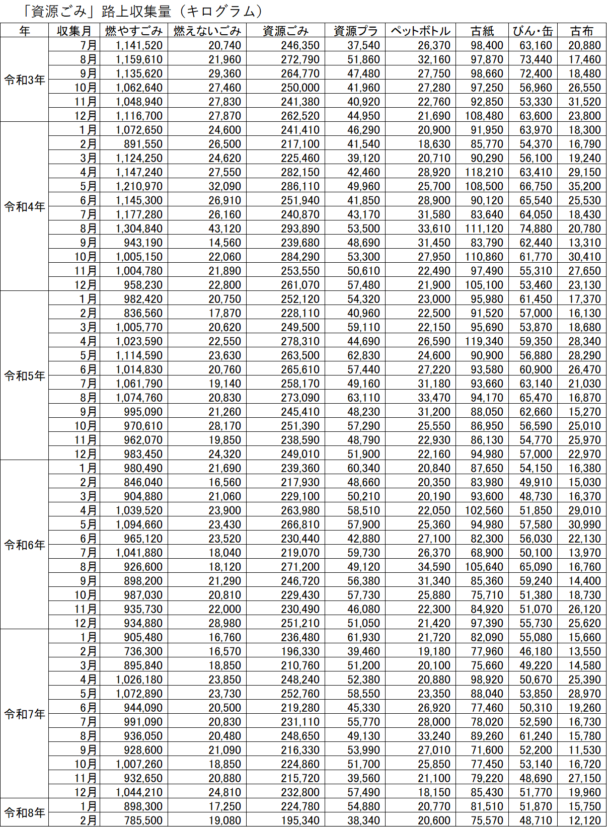 さて、中津市の「ごみ収集(路上収集)」の2月分がホームページに公表されたので、市のデータをグラフにしてみました。