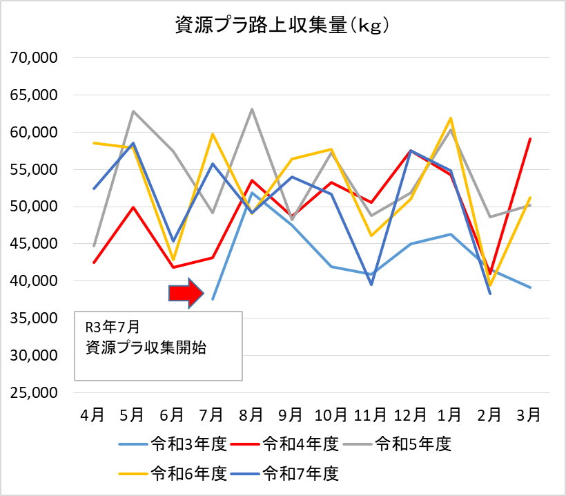 資源プラの回収量は、ここ2、3年ではほぼ横ばいとなっています。