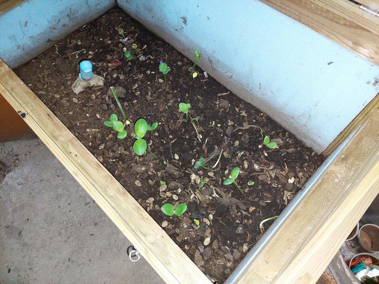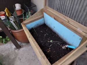 さて、勝手口の横に設置している生ごみキエーロに生ごみを投入しました。