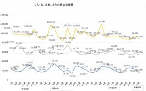 さて、中津市の「ごみ収集(路上収集)」の1月分がホームページに公表され、市のデータをグラフにしてみました。
