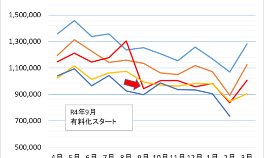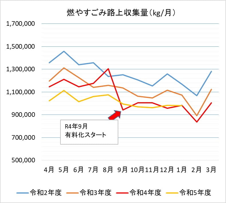 令和2年より燃やすごみの減量が続いていましたが、昨年12月は増加し、1月はほぼ前年と同量となりました。有料化による減量効果が頭打ちの状況になってきたように推測されます。